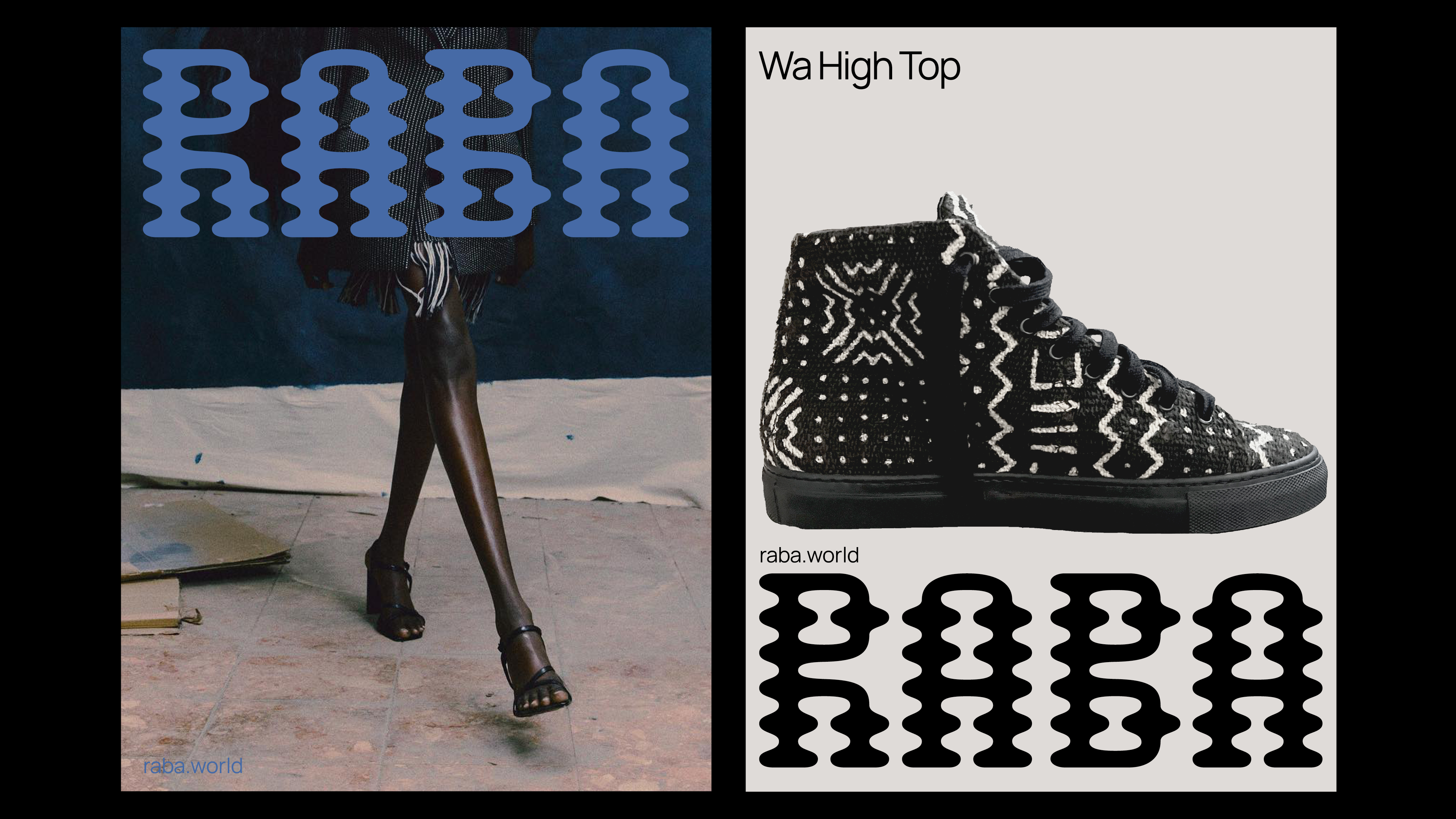 RABA ("sneaker" in Swahili) is a new footwear brand made from consciously sourced high quality materials and homaging African wisdom and creativity. It uses woven textiles from all across continent, paired with high quality Italian production. It is an infusion of African heritage into the modern lifestyle of the diaspora. The general feel of the brand is artisanal, poetic yet direct and clear, it is calm and confident.