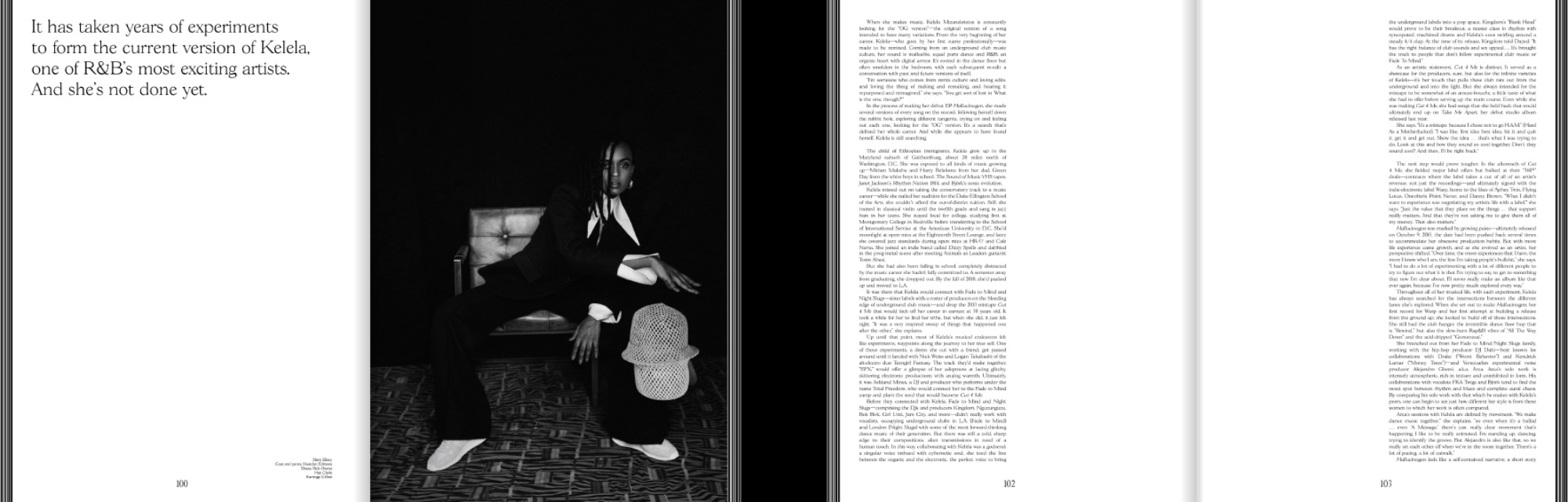 For our cover, Justin French photographed Kelela, an Ethiopian-American singer who communicates through her music and opens the door for others to answer with their own creations. Coming from an underground club music culture, her sound is equal parts dance and R&B. An organic heart with digital armor, she chooses her collaborators carefully. It’s her dedication to her craft that allows her to zero in on her discoveries, yet see the power in sharing knowledge with her peers.