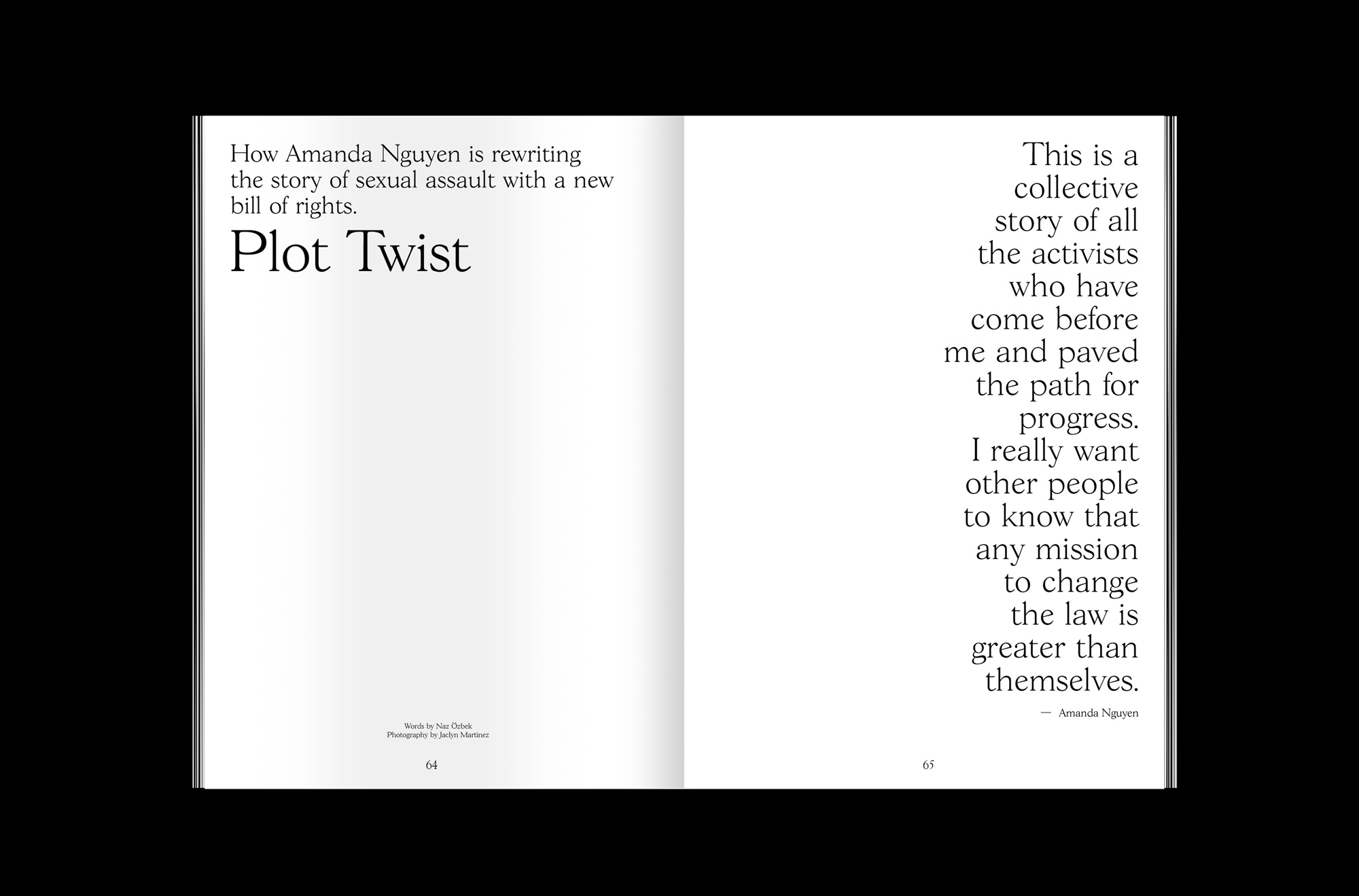 An ancient Japanese proverb says, “Vision without action is a daydream. Action without vision is a nightmare.” This issue spotlights visionaries who have turned imagination into something tangible, a communal, transferable perspective that impacts the community. They are in every industry and in every circle, from Nobel Peace Prize nominee Amanda Nguyen and epochal creative force Daphne Guinness to leading political voices Adebola Williams, Sara El-Amine and Van Jones. The future belongs to those who envision it.